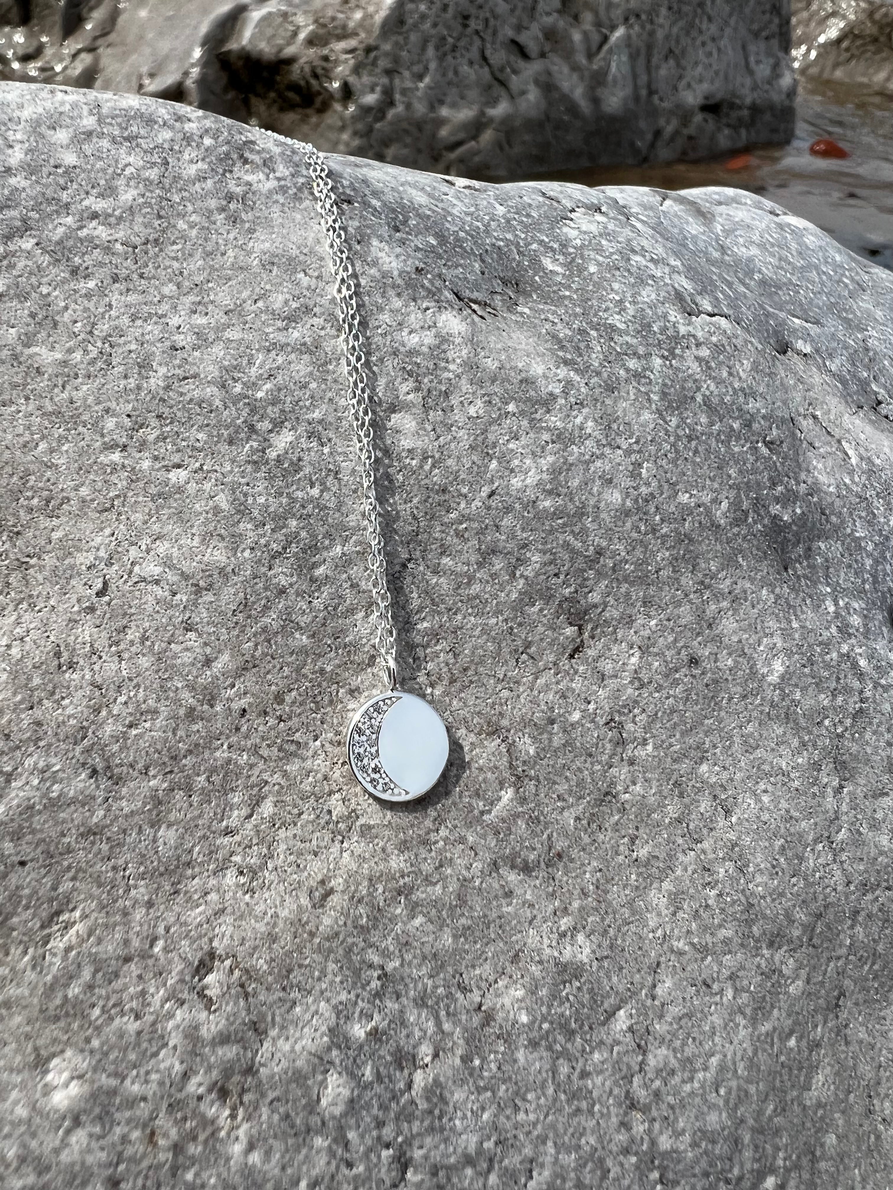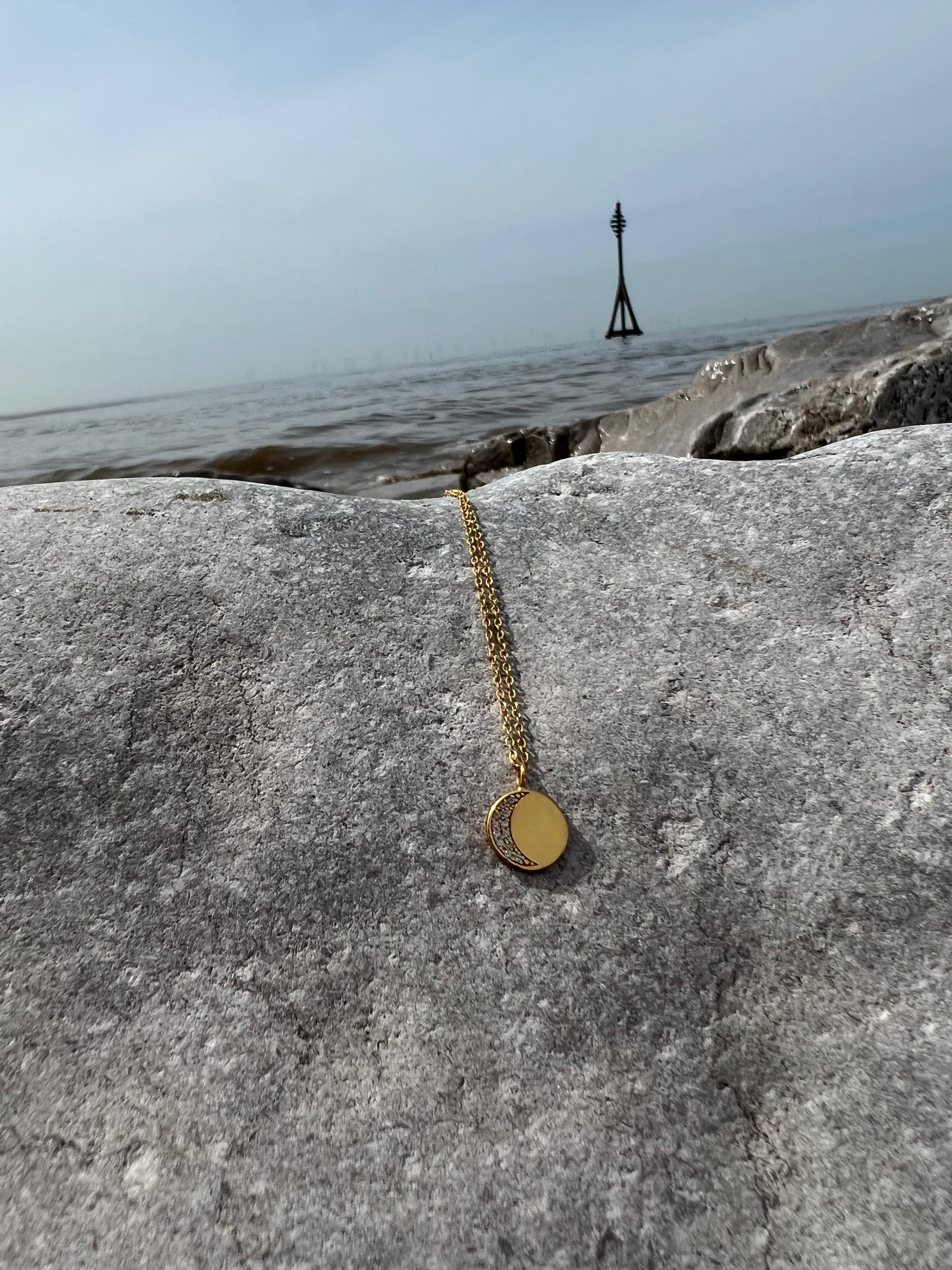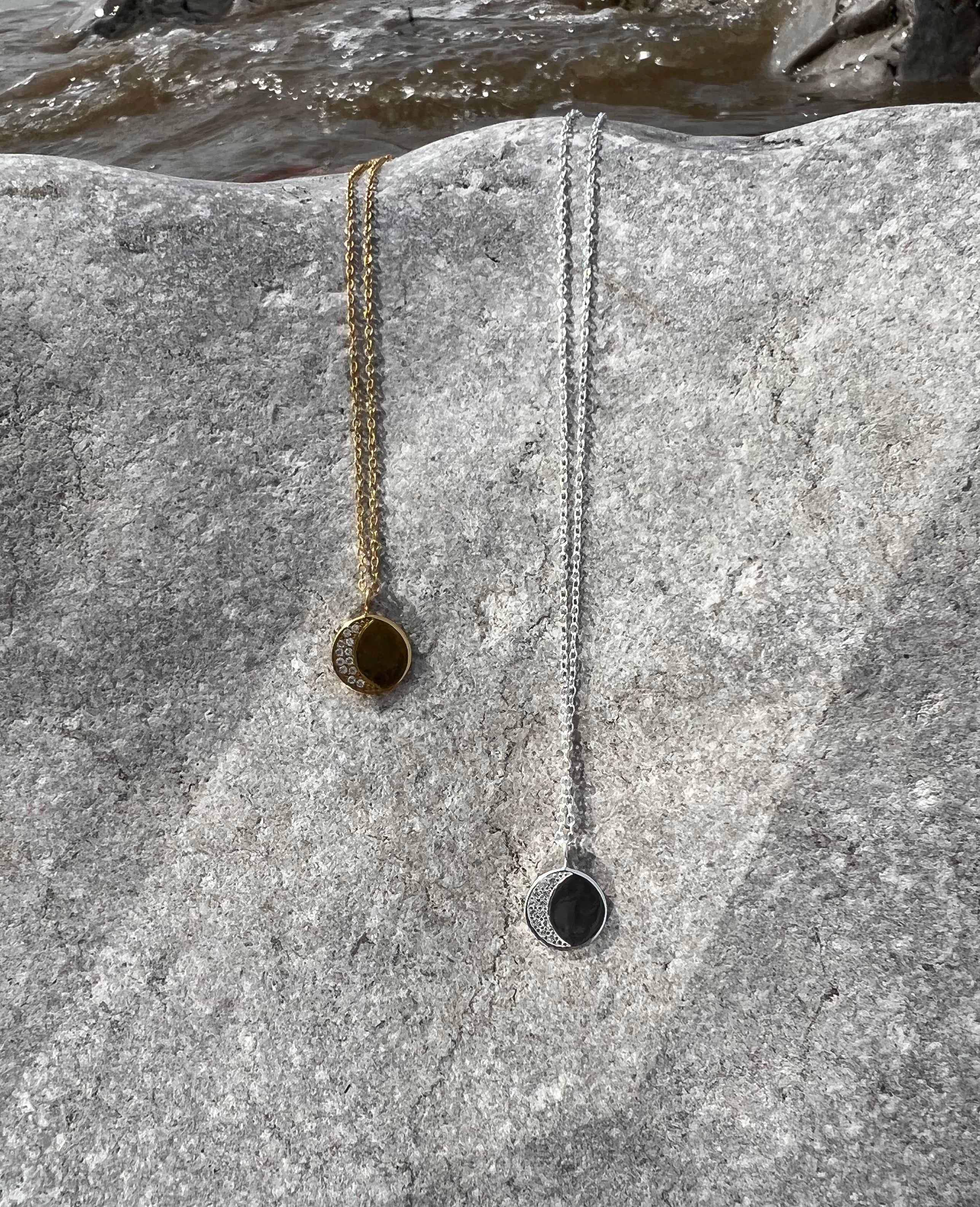 This stunning necklace represents the beauty of the moon when it is far from full. Hand crafted from 925 sterling silver also available in gold plated. This piece will be the subtle star of the show.