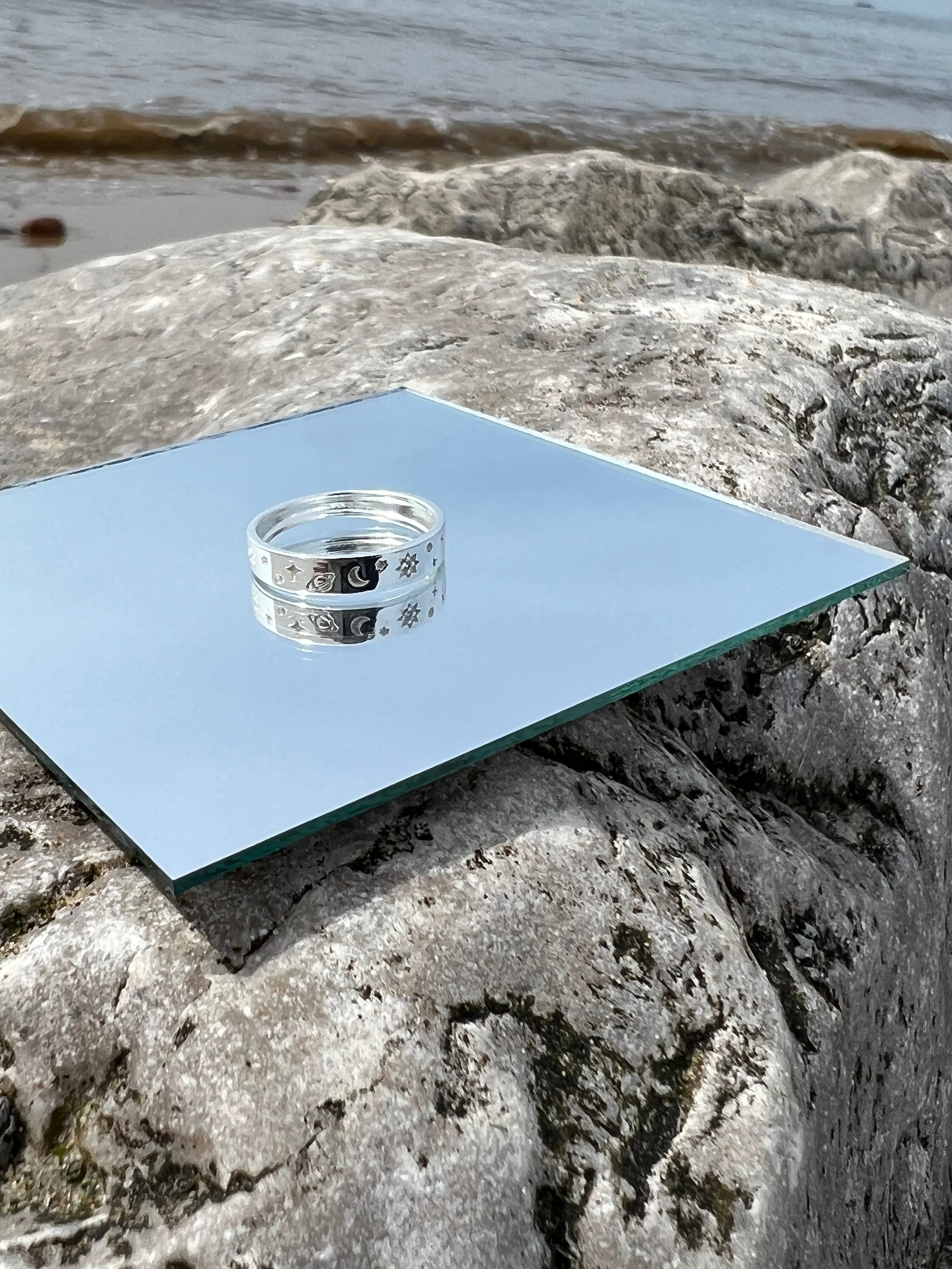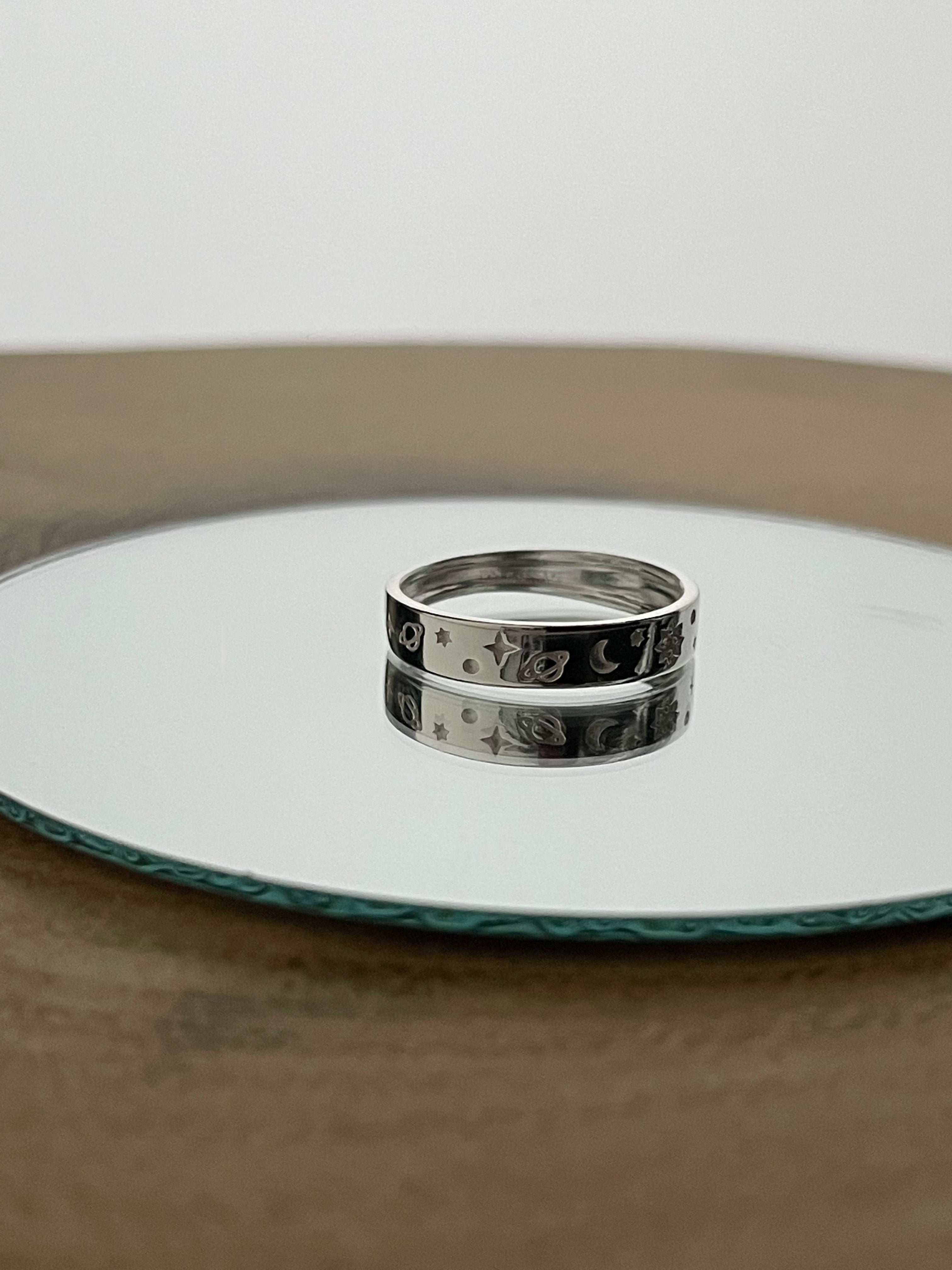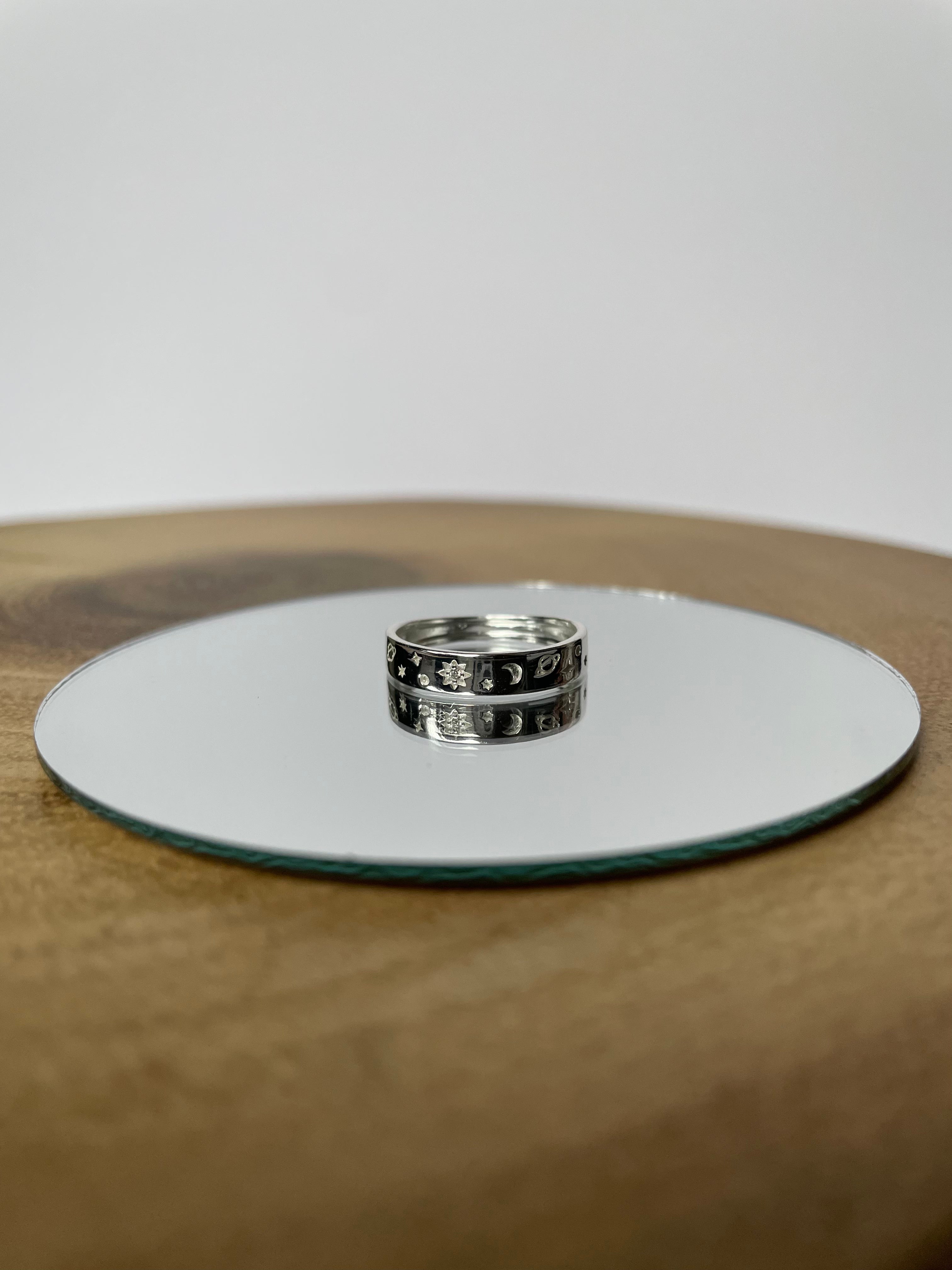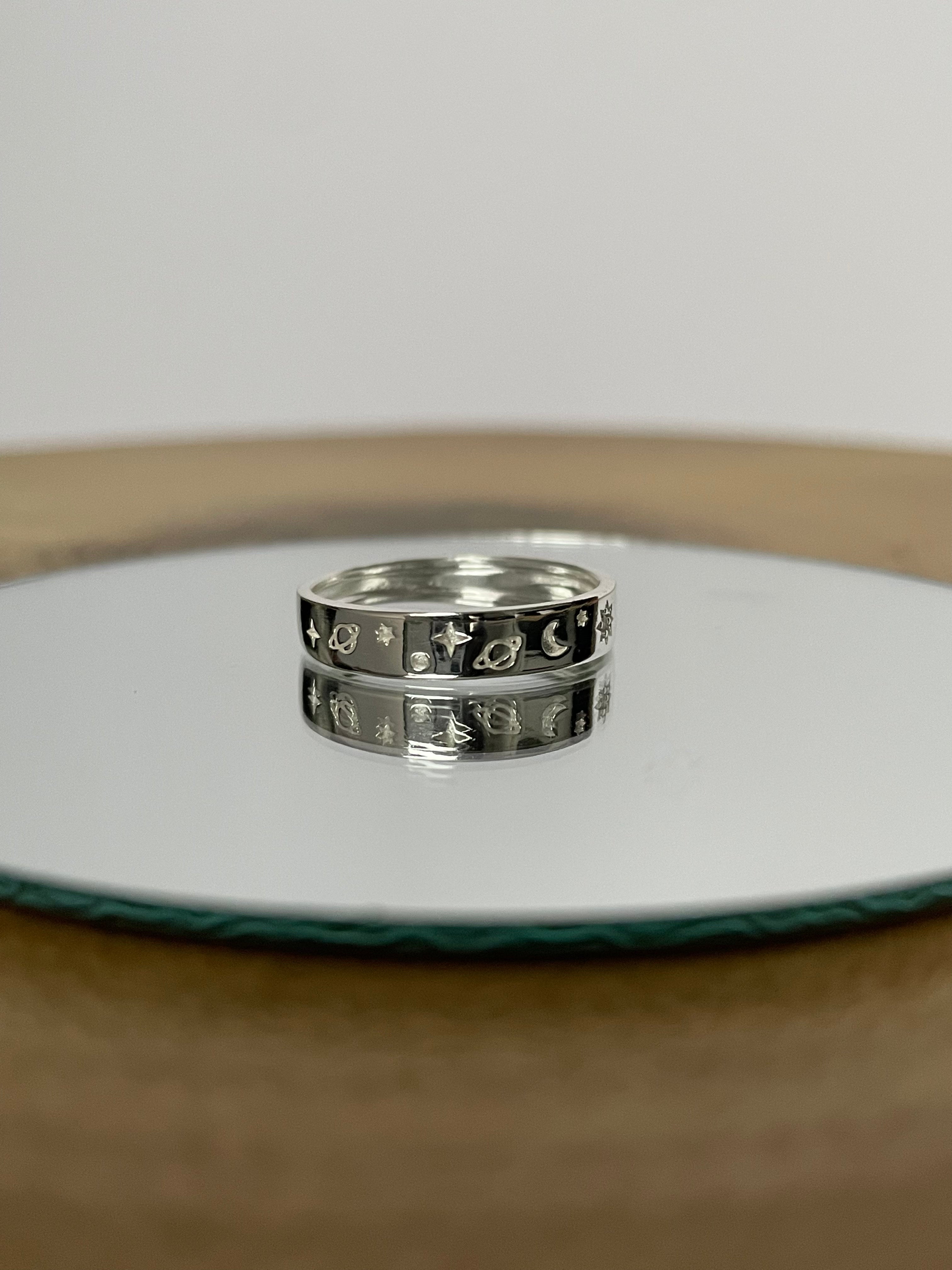 This sterling silver celestial engraved ring is the perfect statement piece. Lovingly created with inspiration from our universe.
